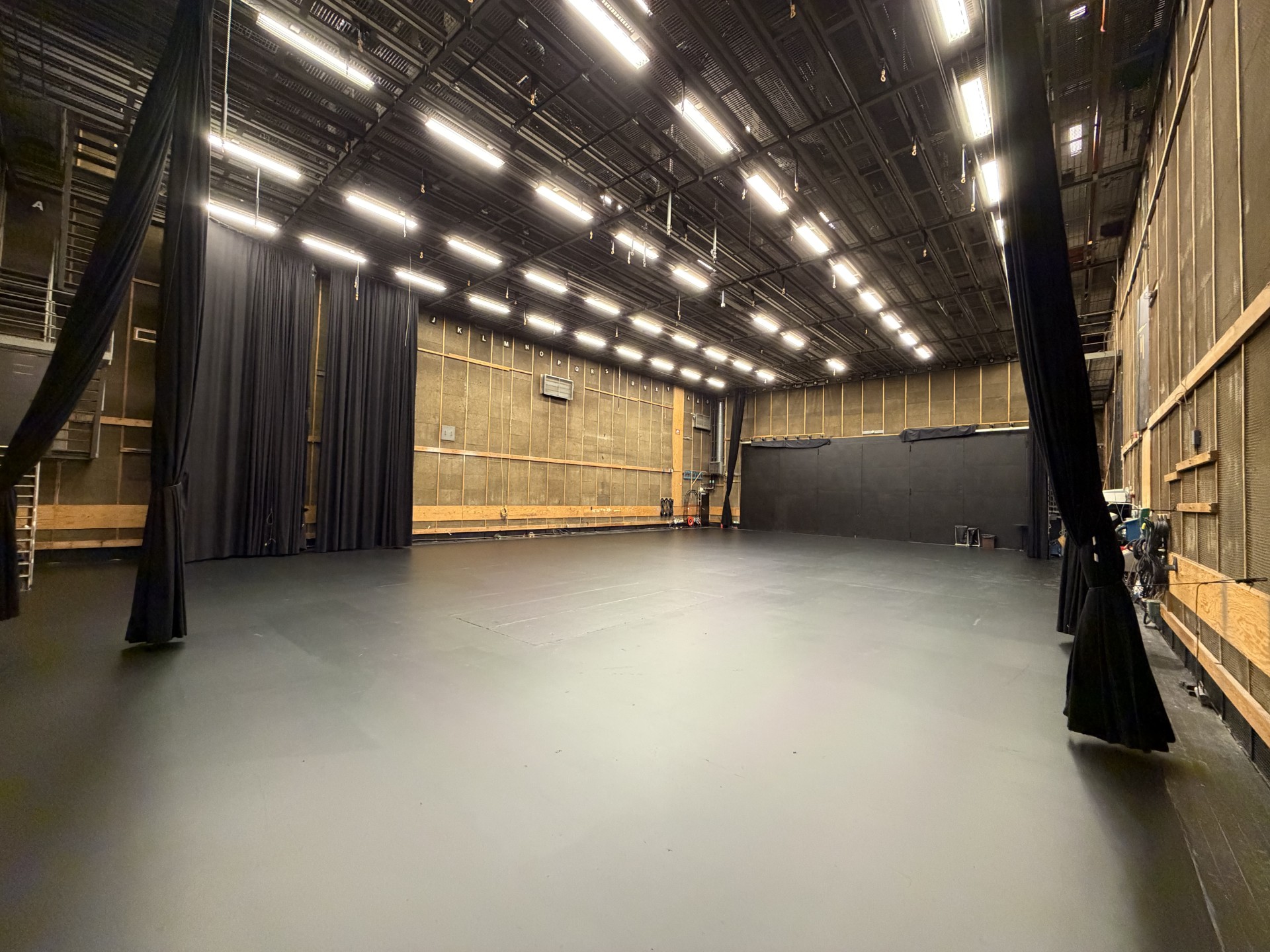 Studio F1 has an area of 527 m2 with 8,5 meter high ceiling. A walking bridge is available for light rigging. The studio is equipped with a DMX lighting control system. Black cyclorama is covering all walls. The studio has a built-in pool. The studio has a silent ventilation and airconditioning, allowing for a good work enviroment.